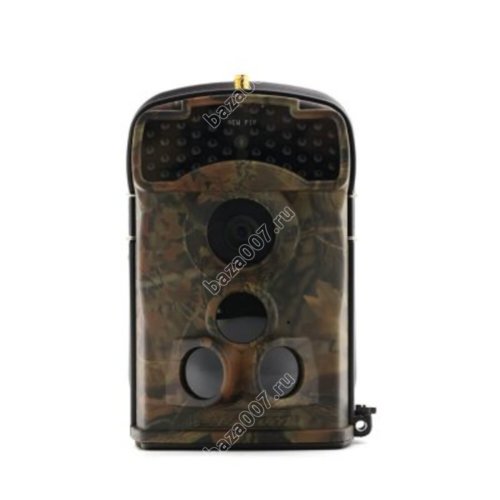 Влагозащищенный корпус камуфлированной окраски позволяет вешать камеру даже в лесу и оставлять там на длительное время, так как в режиме ожидания она может работать до 6 месяцев. Для крепления камеры предусмотрен специальный ремень и дополнительно защитный бокс с более гибкой возможностью крепежа под разным углом. Питание осуществляется от 6 или 12 батареек типа AA. Фото или видеозапись идет на карточку SD (до 32 Гб) и отправляется Вам на телефон в виде MMS или на электронную почту через GPRS. Управление и настройка камеры осуществляется кнопками расположенными на камере.