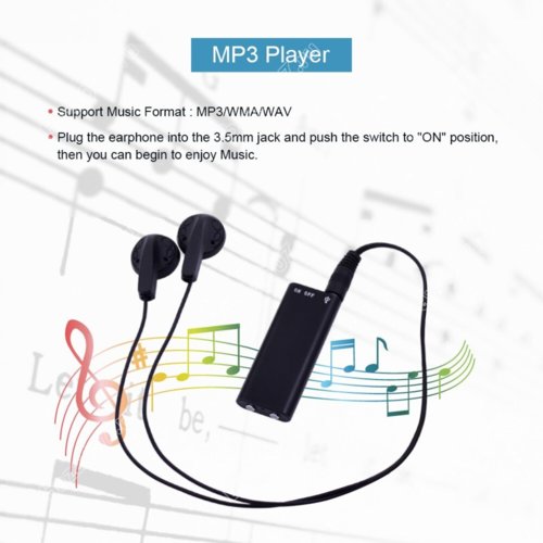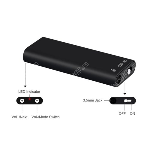 Мини диктофон с голосовой активацией записи Fan Recorder 101 8Gb - наверное один из самых маленьких диктофонов в мире. Его размер - всего 47 x 18 x 6.5 мм. Микро диктофон имеет 8 Гб встроенной памяти, функцию голосовой активации и 100 мАч встроенный аккумулятор, которого хватит до 8 часов записи.